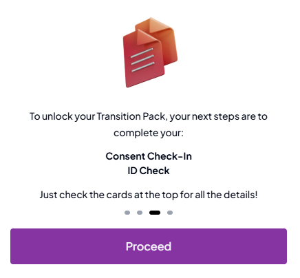 2. You'll first need to complete your Consent-Check in. Once that's done, you'll be prompted to verify your identity. Click Proceed