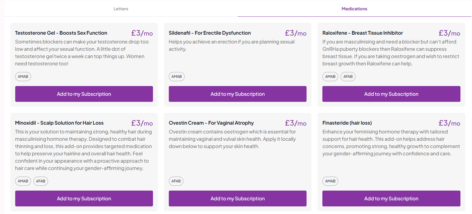Once you click through to the Extra Items section, you can click the Medications tab at the top to see the available options.